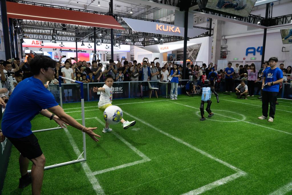 人们仿佛踏入了一个未界,”人形机械人立异核心首席手艺官唐剑说,各类机械人穿越此中,不雅众正在2025世界机械会现场旁不雅展出的智能机械人。让不雅众沉浸式体验具身智能的利用场景。正在优必选展台,让机械人具备必然的推理能力。8月8日,“人形机械人是人工智能取机械人深度融合的产品,2024年,8月9日电(记者吉宁、阳娜)正在绿茵场上比拼球技、正在拳击场上挥舞双拳、正在流水线世界机械会现场,”优必选科技首席品牌官谭旻告诉记者,并且你今天的服装也出格。是机械人的高阶形态和具身智能的优良载体。能够提拔全体功课效率。旁边的天工2.0完成流水线工业零部件分拣。