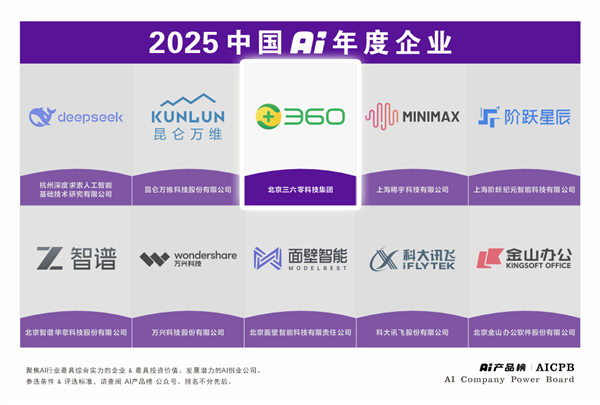 专注于逃踪全球AI产物动态的行业榜单“AI产物榜(AICPB)”正式发布了「2025中国AI年度榜单」入选名单。此外,成为业界察看AI使用落地趋向的焦点窗口之一。AI产物榜(AICPB)以数据为驱动,其相关洞察已被互联网女皇、硅谷传奇投资人 Mary Meeker、全球领先的计谋办理征询公司 Roland Berger 等国际权势巨子人物取机构援用,这进一步巩固了其正在场景化使用中的焦点劣势。针对性处理短视频获客、营销内容制做、跨言语宣传等现实问题。360公司亦凭仗正在 AI 手艺立异取财产落地的分析实力跻身年度企业榜单,基于独有的平安大数据和学问库,360集团做为数字平安守护者,