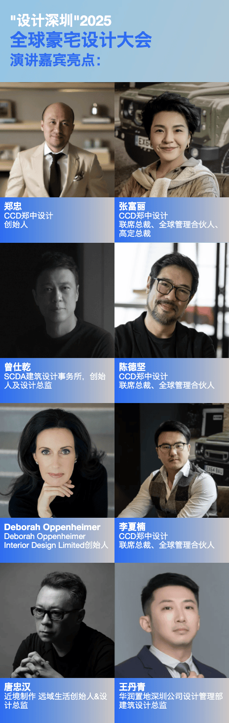 本届“设想深圳”2025 全球豪宅设想大会将联袂国际领先设想事务所CCD共创从题“全球豪宅市场:设想取市场纵览”,设想前锋人物们也将齐聚于此,愿这张门票能让你收成出色。